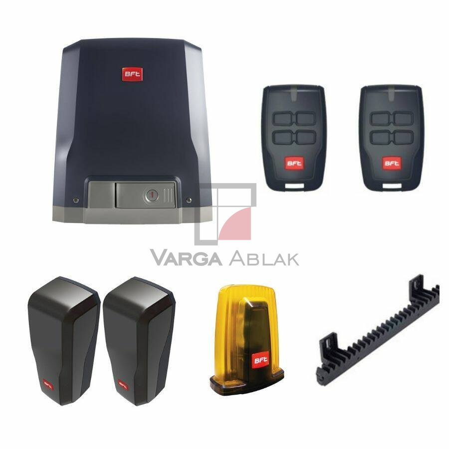 Tolókapu motor, 2db 4 csatornás ugrókódos távirányítóval., 1 villogó, fénysorompó, 4m fogasléc, max. 400kg kapu súly